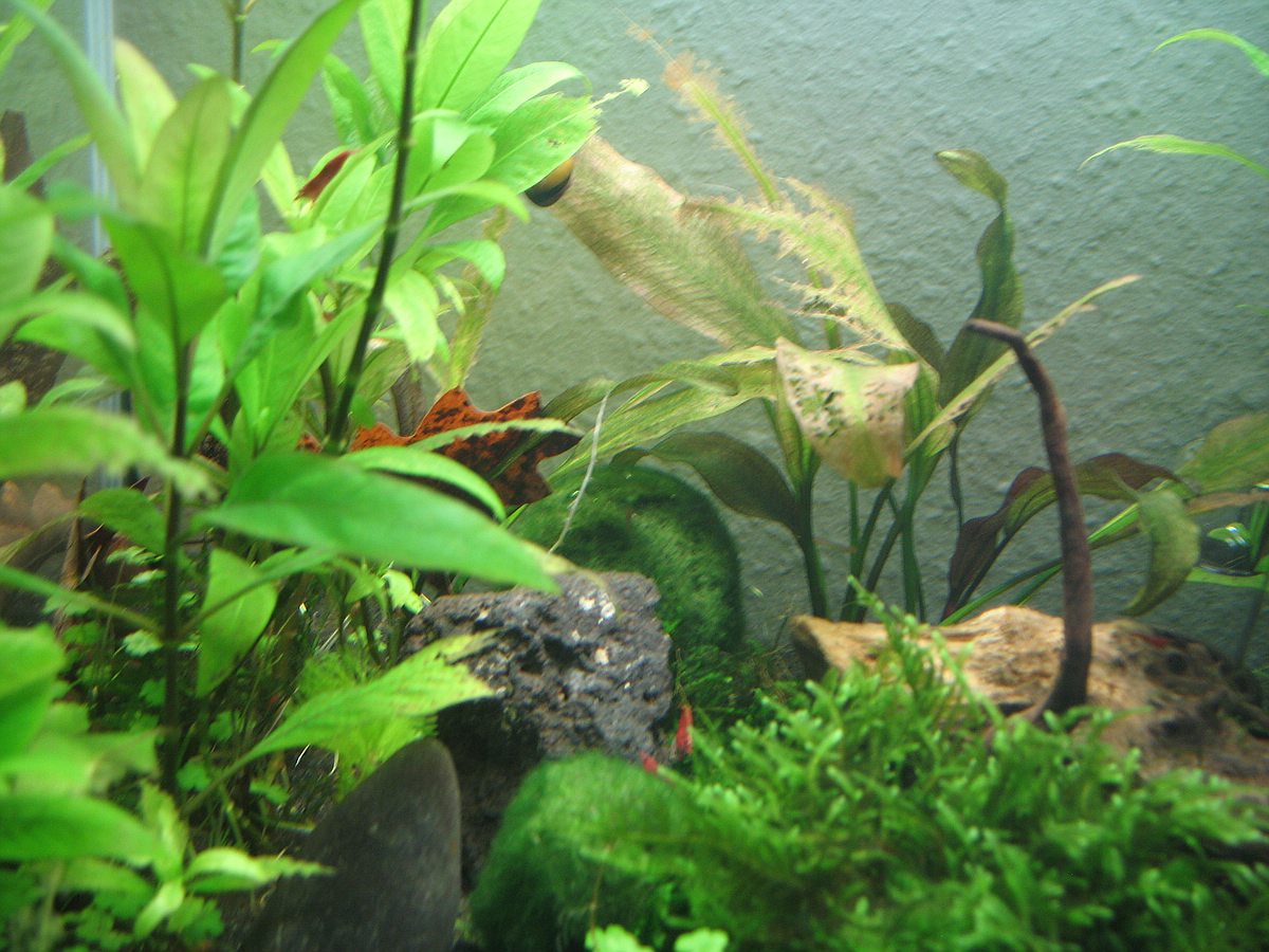 Wißt Ihr, woran es liegt? Zuwenig Licht, zuwenig Dünger oder sind die kleinen Blasenschnecken oder die großen Schnecken (Renn-und Geweih- und Helmschnecke) Schuld?