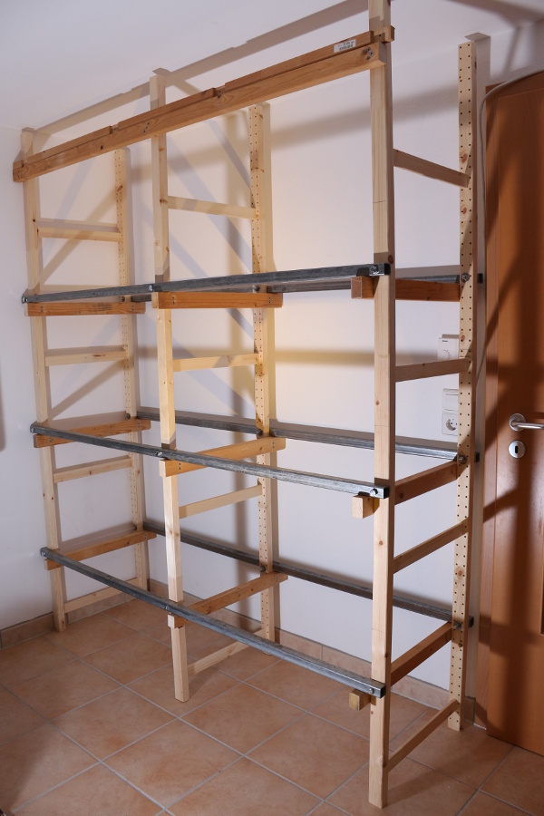 hab' ein neues Regal gebaut. Als Basis habe ich IKEA IVAR Regal Seitenteile verwendet. Damit hatte ich automatisch rechte Winkel.