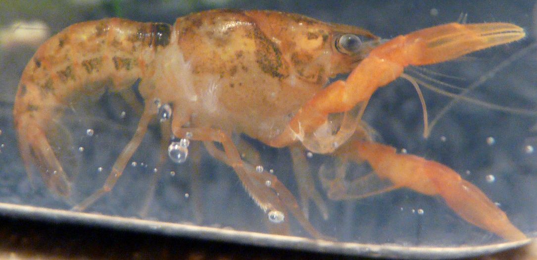 Wenn Du Rechtshänder bist, solltest Du den Krebs mit der linken Hand greifen (am Körper mit Daumen und Mittelfinger ).