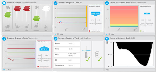 angezeigt (grüne LED alles ok und rot "bedenklich", das für jede Messgröße, also NH4,PH , TEM usw. ).