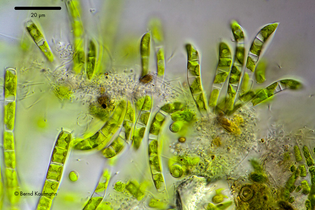 Vor dem Wochenende habe ich eine Probe an Bernd Kaufmann geschickt, wovon er jetzt die Ergebnisse vorliegen hat. Er hat mir angedeutet, dass es sich um eine relativ wenig bekannte Alge handelt.