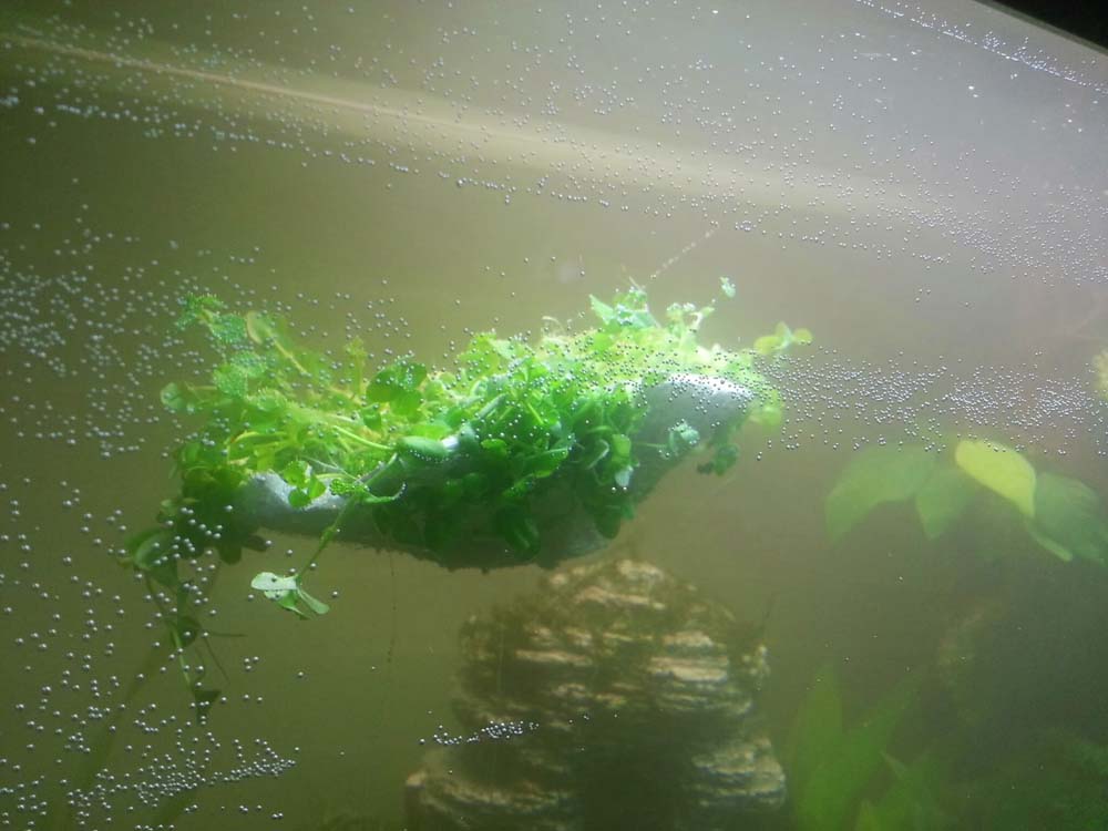Nachdem das Wasser fast komplett drin war aaah Styropor zu leicht, hebte die Wurzel an, noch ein wenig abgeschnitten und die aufgebundenen Pflanzen wieder neu befestigt jetzt geht es ist was anderes aber noch nicht das gelbe vom Ei.