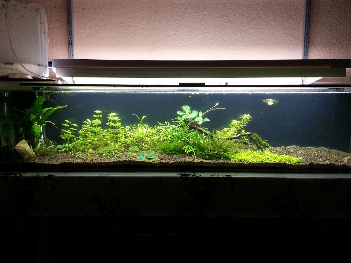 Die Röhre gibt knapp 3000 Lumen (mit Reflektor) ab und befindet sich 55 cm über dem Bodengrund (Beckenhöhe 50 cm).