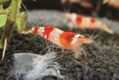 Gut geeignet als Proteinquelle (aber seltenst, höchstens zweimal pro Woche) ist z.B. roher Fisch - eine winzigste Menge, pro drei Garnelen so ca. 1 Stecknadelkopfgröße. Tote Fliegen gebe ich ihnen auch, die werden gern gefressen - ich verwende aber auch keinerlei Pestizide hier. Aber auch entsprechend selten, zu viel Protein ist nicht gesund für die Tiere.