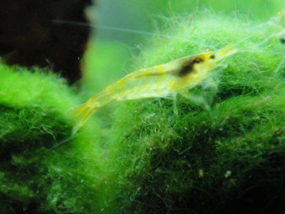 Gut geeignet als Proteinquelle (aber seltenst, höchstens zweimal pro Woche) ist z.B. roher Fisch - eine winzigste Menge, pro drei Garnelen so ca. 1 Stecknadelkopfgröße. Tote Fliegen gebe ich ihnen auch, die werden gern gefressen - ich verwende aber auch keinerlei Pestizide hier. Aber auch entsprechend selten, zu viel Protein ist nicht gesund für die Tiere.