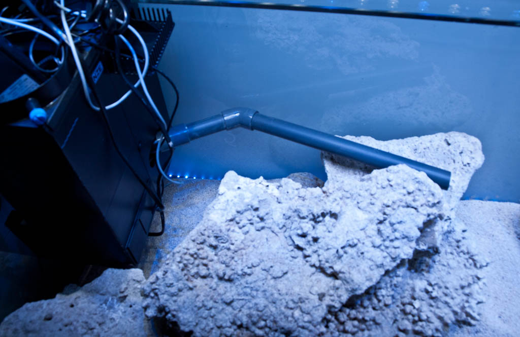 Der Filterauslauf wurde mit 24mm PVC-Rohr verlängert damit das Wasser nicht auf das Gestein prallt: