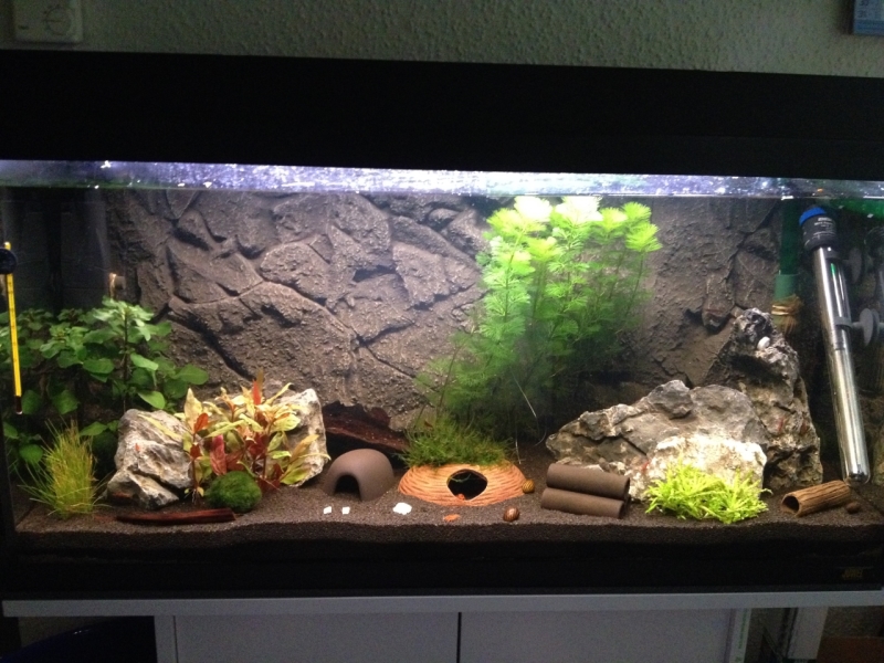 Aquariumbesatz ist eingetroffen und fühlt sich wohl. Die Befürchtungen, dass sich die CPOs nicht mit den Garnelen oder den Welsen verstehen, hat sich Gott sei dank nicht bewahrheitet.