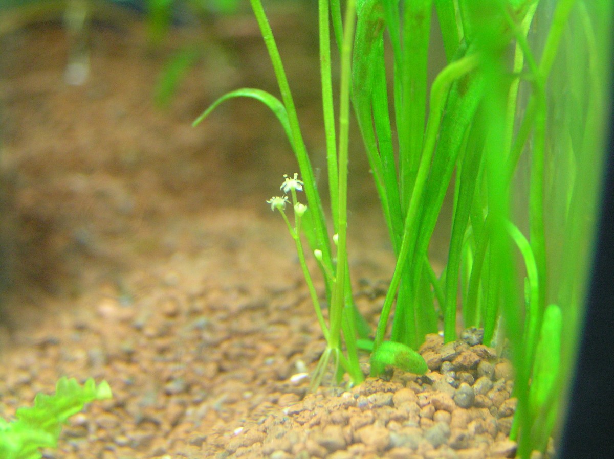 Meine ca. 4 1/2 Jahre alte Echinodorus "Rosè" hat seit einiger Zeit eine Blütenrispe mit kleinen weißen Blüten und hat mich damit wirklich überrascht und erfreut, sowie auch die Bewohner des Altersheimes, wo mein Aquarium steht.