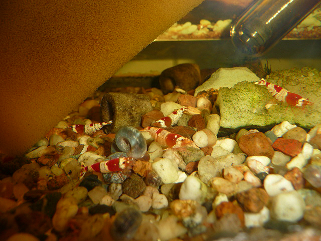 hier meine vier Becken, in denen sich Tiger und Bienengarnelen befinden...