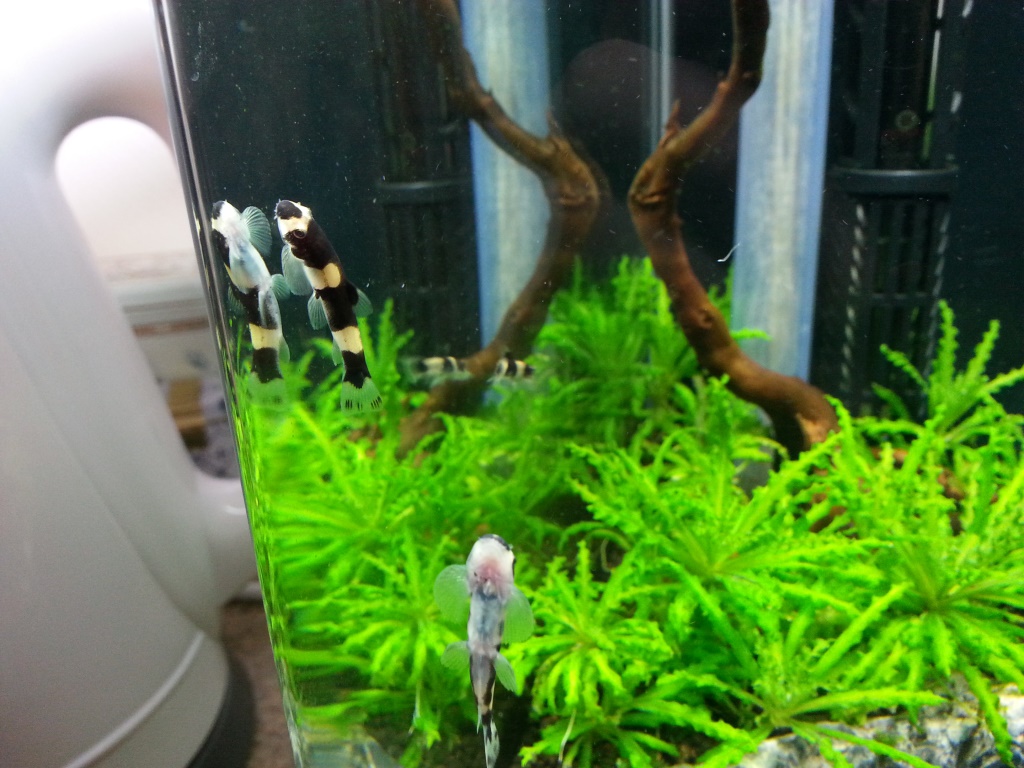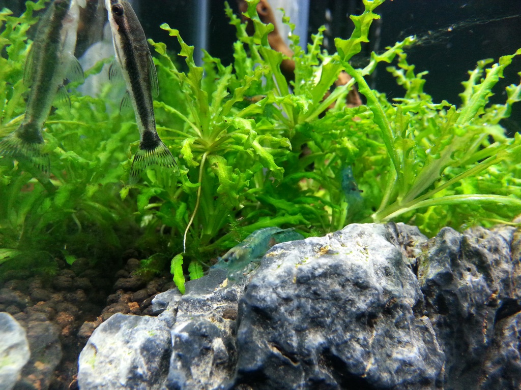 So zum Neocaradina-Becken hier sind als erstes vier meiner Ohrgitterharnichwelse eingezogen, da ich in der zwischnezeit ein starkes Algenproblem bekommen habe.