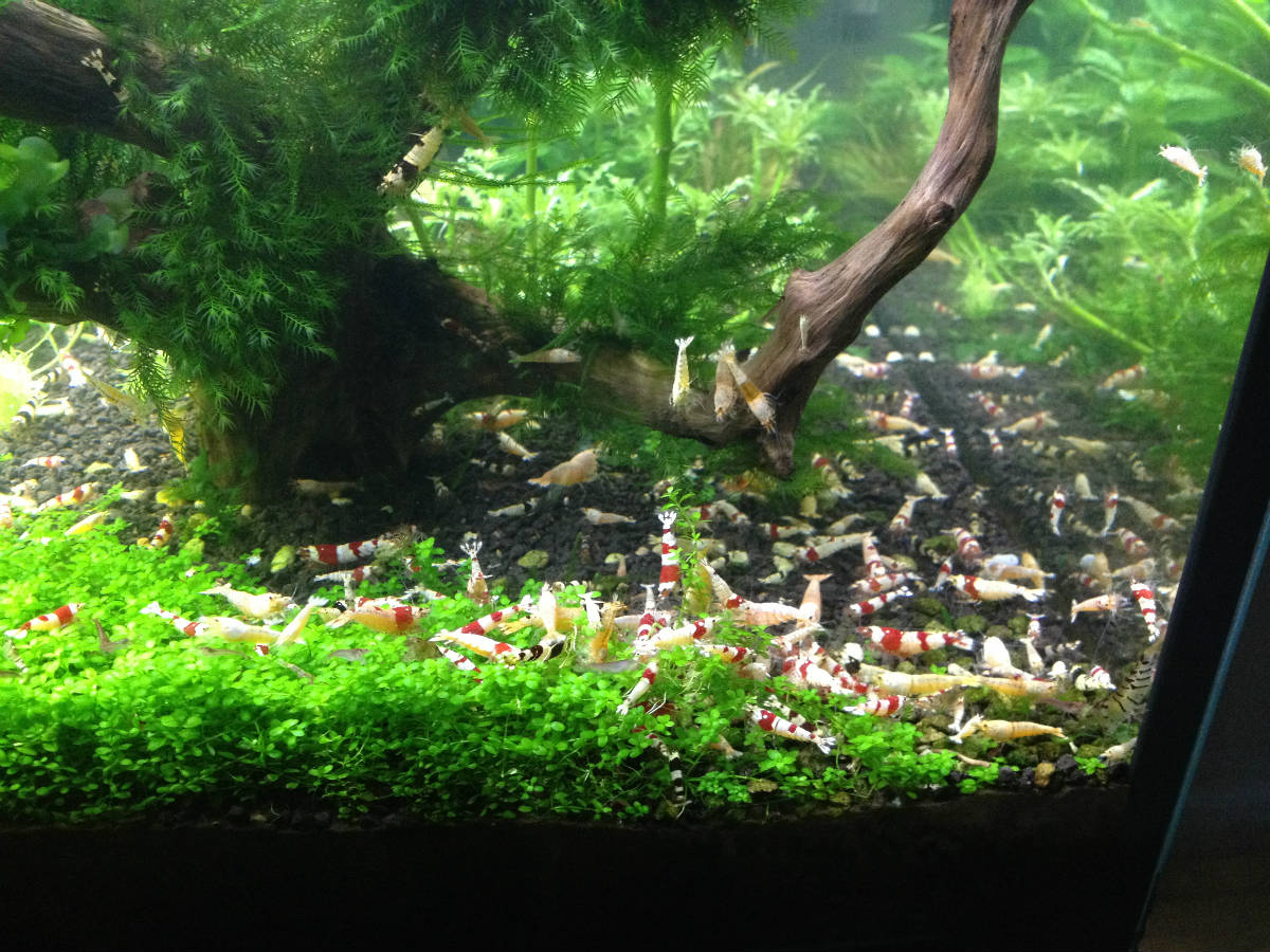 Daheim habe ich noch im Technikkeller ein weiteres 60er mit Garnelen : Rückenstricher und Rotschwanzgarnelen.
