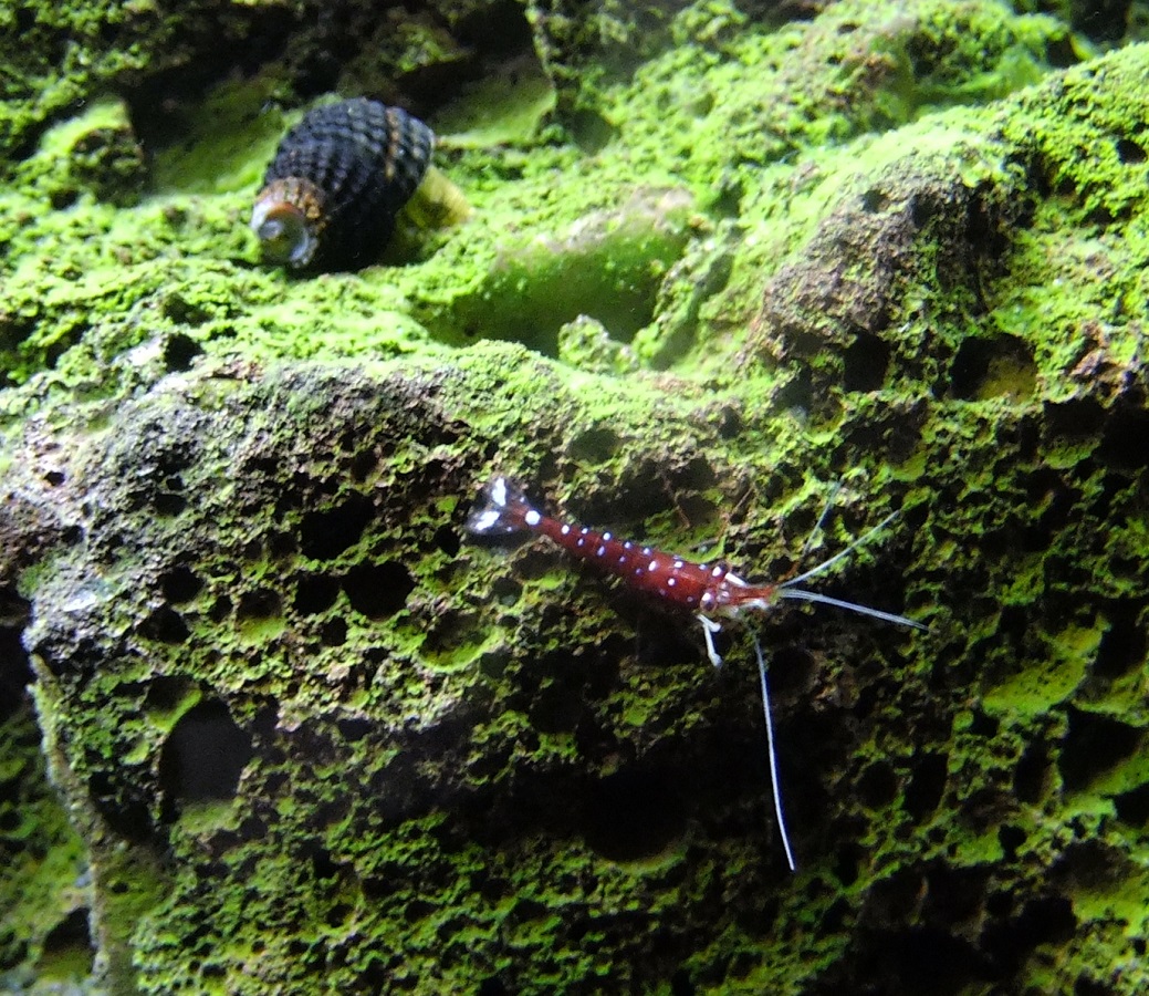 vor gut einer Woche hatte ich erneut einen Todesfall. Und etwas vorher war eine Mini-Tylo tot. Aber Garnelen-Nachwuchs habe ich regelmäßig und aktuell wuseln sie in allen möglichen Größen durchs Becken.