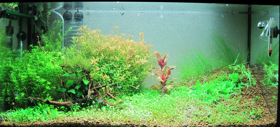 Seit 3 Monaten läuft nun mein erstes Scape "Akadama Valley" wohlgemerkt mit dem Bodengrund Akadama. Dieser hat die selbe enthärtende Wirkung wie Aquasoil und erfüllt auhc dessen Zweck. Nur leider senkte dieser meine gH kH und pH Werte so stark dass mein Scape nicht mehr für meine Garnelen geeignet war.