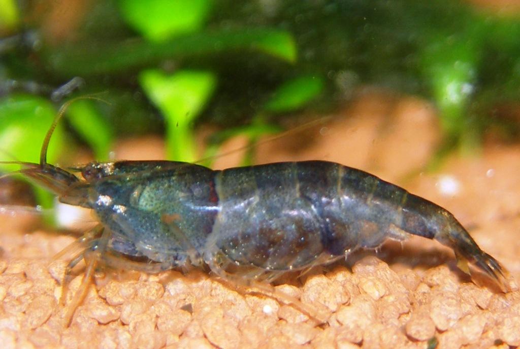 Nur wenige meiner Tiere sind durchsichtig/kupferfarben mit 3 dunklen Binden geblieben. Die meisten haben ein bisschen weiß am Rücken bekommen, oder einen Blaustich. Diese Garnele ist wunderbar variabel in ihrem Aussehen. Auch das Blau wirkt in Natura viel, viel schöner als auf dem Foto. Und das allerbeste ist, sie vermehrt sich prima