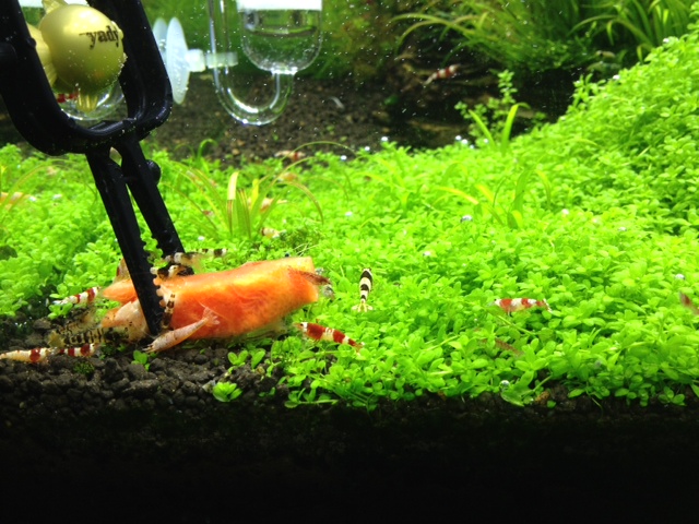 Also im Grunde genommen ist es mir gar nicht viel zu hell. Ich habe nur im Pflanzenbecken meines Händlers HCC gesehen, was richtig tief grün ist. Meins ist halt eher hell grün ins gelbliche rein, das wirkt immer kraftlos und wie Eisenmangel bei den großen Pflanzen. So ein bisschen mehr Biss wär schön.