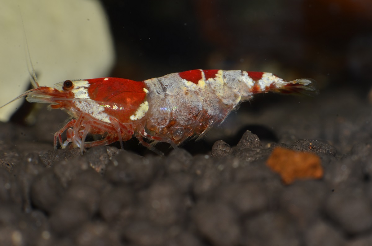 Das wichtigste bei Garnelenfotos oder auch Aquarienfotos sind immer entfesselte Blitze von oben durch die Deckscheibe + von der Seite. Ohne entfesselte Blitze wird man diese Qualität an Fotos nie erreichen ;)