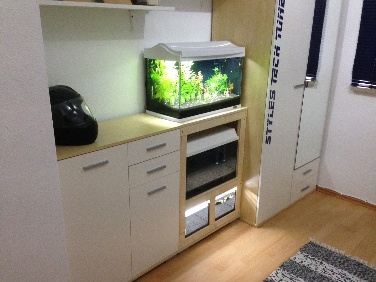 Aber damit nicht genug wurden für die beiden unteren Fächer von einem befreundeten Zoohändler passende Becken angefertigt.. :whistling: