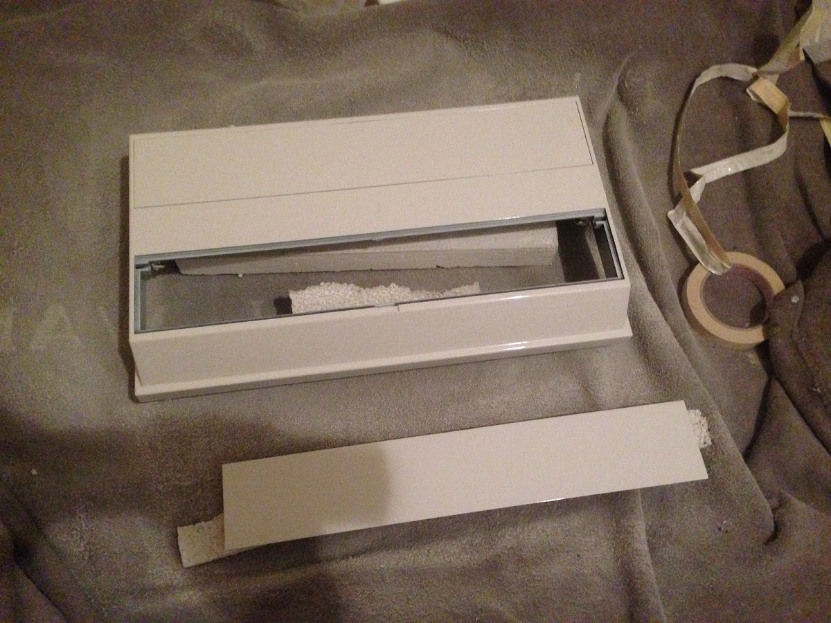 Die Abdeckung habe ich dann von ihrer eigentlichen T8 Leuchtstoffröhre befreit und auf LED umgebaut, es kommen aber noch ein paar mehr hinzu, ist noch nicht hell genug.