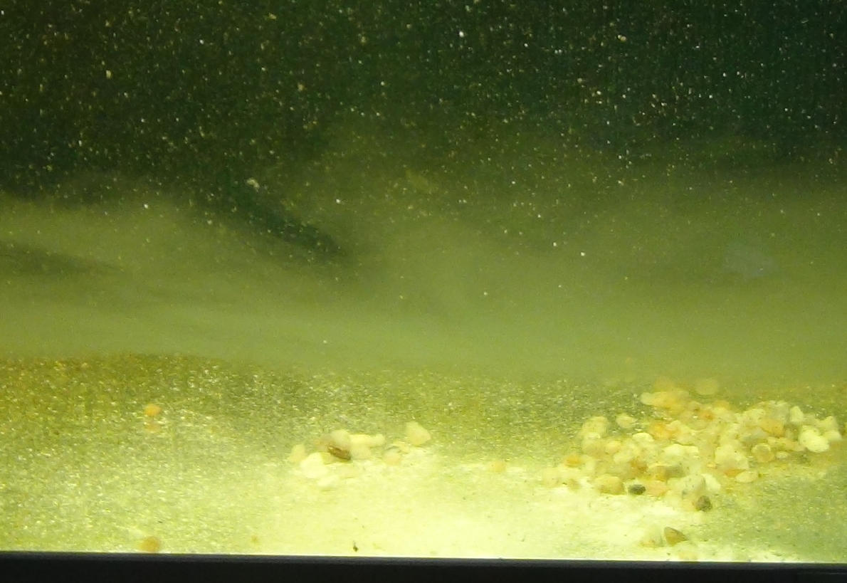 Als ich am ersten Tag Liquizell in das Aquarium gegeben habe, ist es wie eine Wolke im Becken geschwommen.Aber nicht einfach so, sondern es hat sich eine Wolke gebildet, die eine gerade Ebene durch das ganze Aquarium zieht...