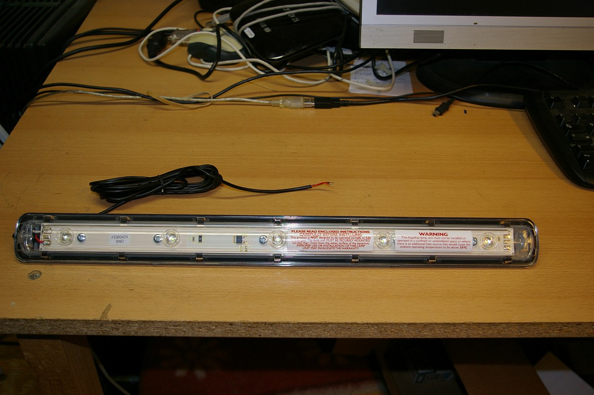 Und zwar ist ein ca. 20cm langer Kühlkörper oder Umwandler oder sowas dabei, der irgendwann zwischen der Lampe und der Steckdose zwischengeschaltet werden muss. das ist schon schwierig den zu verstecken, wenn man keinen Aquariumschrank hat.