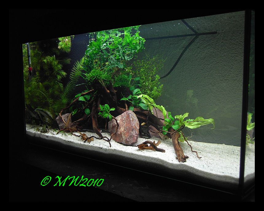 ) nach Gefühl, Micronährstoffe, NPK und Eisen, zu. Einmal pro Woche mache ich einen Wasserwechsel von 60%, da ich ja doch einsehe, daß ich ziemlich ins trübe dünge.
