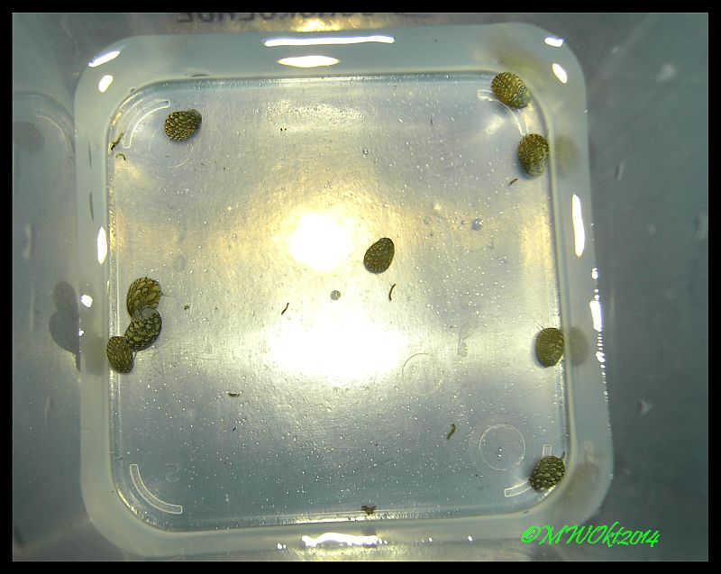 Das rauskriechen lassen aus dem Glas is ja noch unkritisch..aber wenn man sie aus dem Aq rausholt, geht es wohl nicht ohne sanfte Gewalt. Die an den Pflanzen kriegt man ja ganz leicht ab..aber die am Glas oder glatten Steinen hat man kaum eine Chance X/