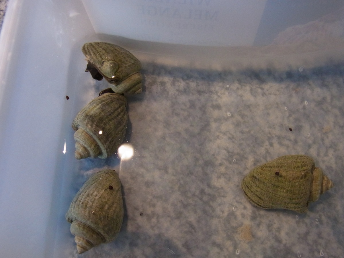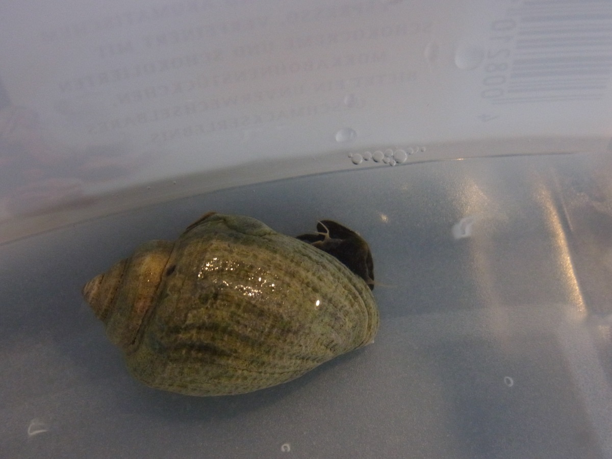 Ich hab dann noch eine kontrolliert, die sich auch eine Zeit nicht groß bewegt hat. Das Gehäuse scheint leer zu sein aber es stinkt nicht. Hab es erstmal wieder ins Becken getan.