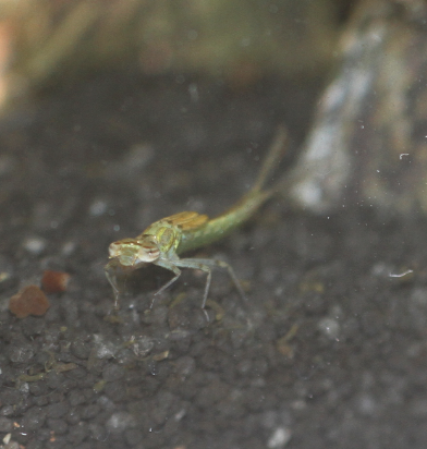 Es könnte sich auch um eine Eintagesfliegenlarve handeln. Am besten du schaffst es, ein scharfes Bild von dem Tier zu machen. Aber erst mal Glückwunsch, dein Wasser ist absolut Top! Ansonsten hättest du diesen Besucher nicht, egal ob es Libelle oder Eintagsfliege ist.