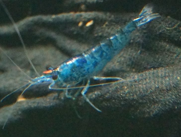 Es handelt sich nur um eine Garnele, die ich auch fotografieren konnte. Sie frisst zusammen mit den anderen und wirkt nicht apathisch. Die anderen haben keine roten Flecke oder ähnliches.