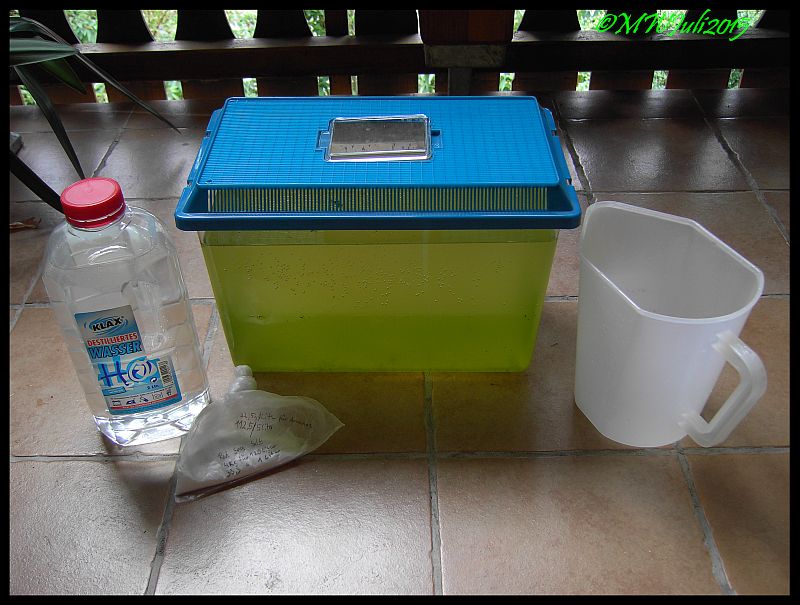 Die Salzkonzentration ist noch nicht voll da..hatte ja auch etwas Wasser vom Mamabecken mit dabei.