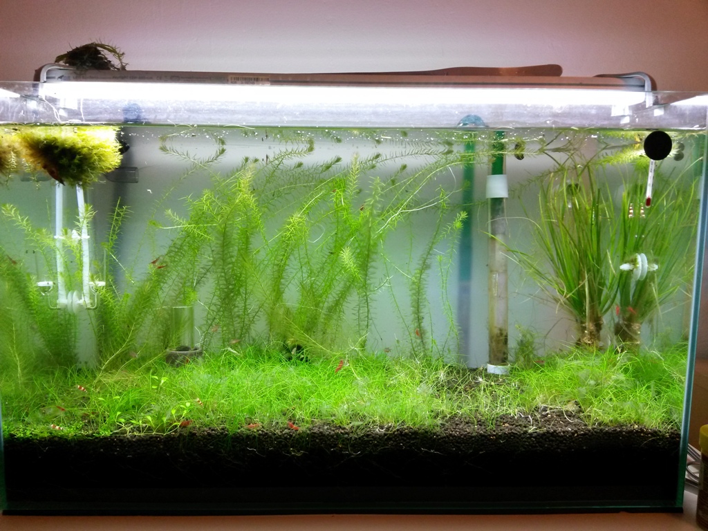 ich habe seit einiger Zeit eine CO2 Anlage um die Algen ein bisschen in den Griff zu bekommen und die Pflanzen zum wachsen anzuregen.
