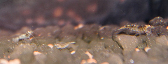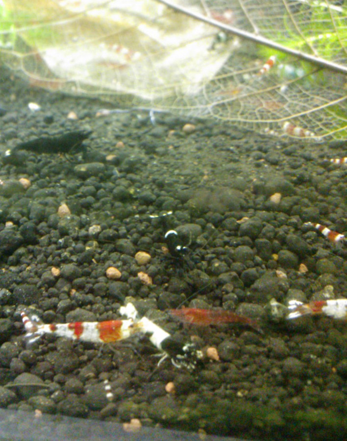 Hm also die rote auf dem zweiten Bild ist schon mal eine Red Fire und sollte sich wohl kaum mit den Caridinas paaren.