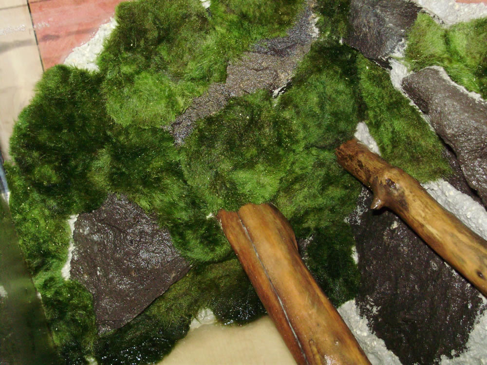 Der vordere längere Ast der quer durch das Becken ragt erhielt auch etwas Moosstücke,