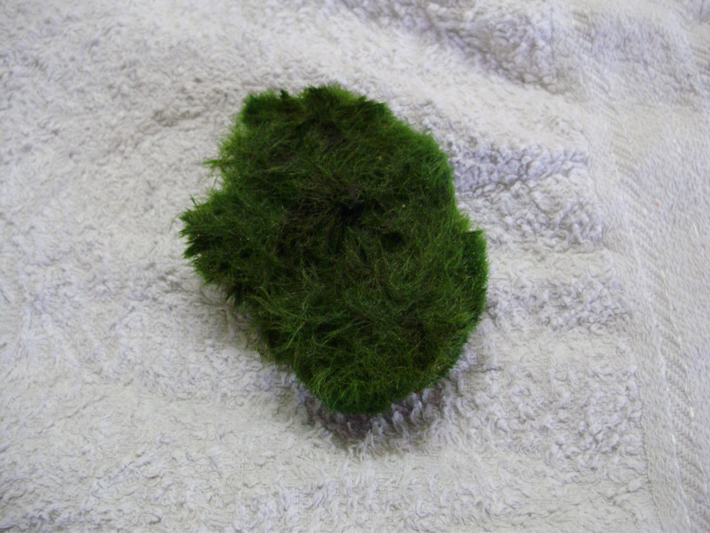 Zum vergleich zeigt Jürgen einen geöffneten Moosball und einen Moosball der bearbeitet wurde, also