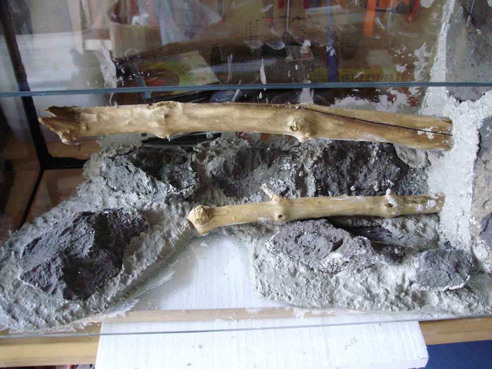 Zur Hand lagen ein paar zuvor gesammelte Basaltsteine und etwas Totholz.