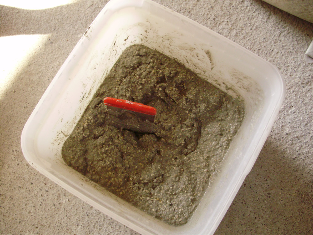 Aus diesen beiden Elementen mischte er sich eine zähflüssige Mörtelmasse.