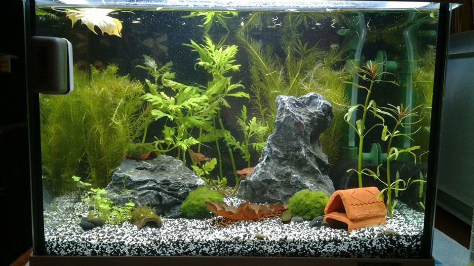 Das erste wurde im Okt. 2013 mit Sulawesi Inlandsgarnelen und Red Rili eingerichtet. Es gab zwar kleinere Probleme mit den Rilis, da ich mir vermutlich durch neue Tiere was eingeschleppt hatte, aber seit knapp 10 Monaten läuft jetzt alles ok.