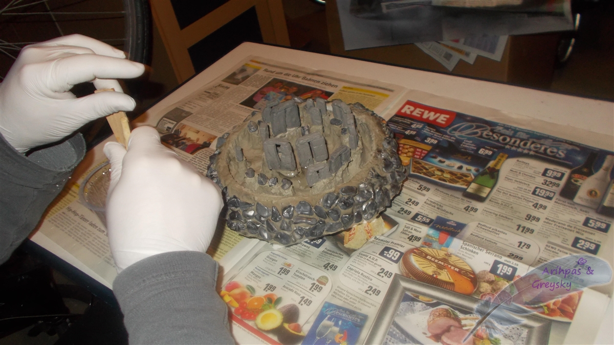 Natürlich soll es was besonderes werden und so wird die Rückwand als 3D-Rückwand mit Styropor und Fliesenkleber gestaltet.