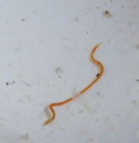 In der Steinwolle (pro Pflanze) tummelten sich ca. 20 solche (ca. 5cm langen) Würmer