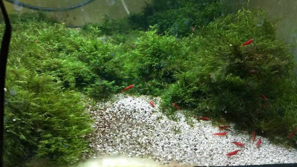 Hier mal die Becken, in allen sind dieselben Tiere. Schätze insgesamt 200 Garnelen, Babys nicht mitgerechnet.