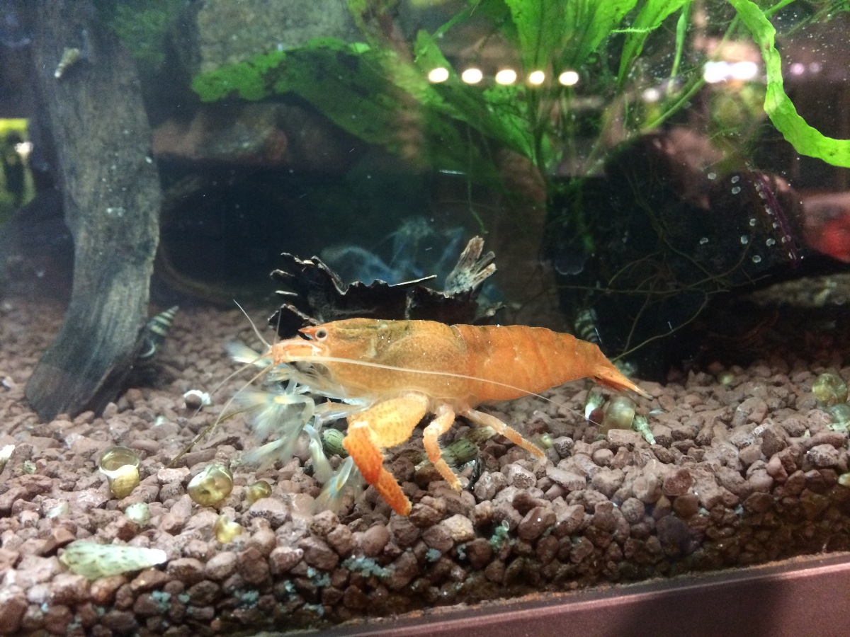Sie war von Anfang an eher "nachtaktiv" im Gegensatz zu den 5 Atya gabonensis, mit denen sie ein reines Strömungsbecken bewohnt auf Bodenfilter (über Luftheber).