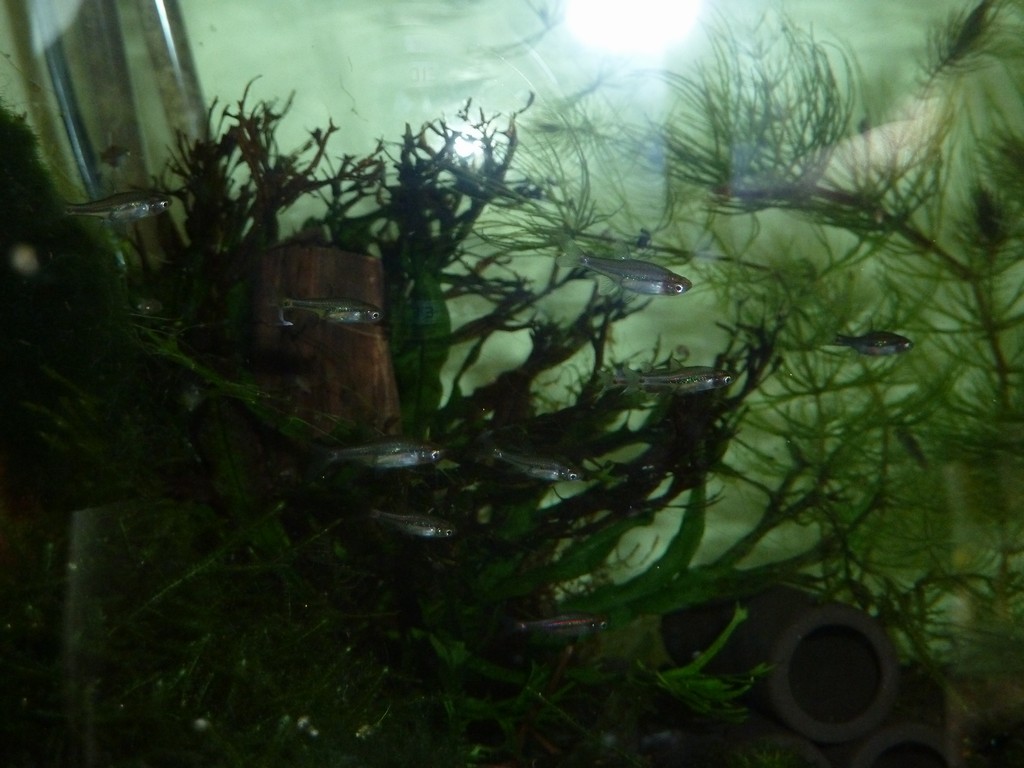 Seit letzten Samstag treibt in meinem TaiwanBee Becken ein Schwarm Boraras urophthalmoides sein Unwesen. Gesehen habe ich die Tiere schon vor einer ganzen Weile bei den Logemännern (garnelenhaus.de), da schwamm der Schwarm am Anfang gleich in dem großen Becken am Eingang und jetzt in der Ecke. Ich fand so ein Schwarm aus kleinen Fischen einfach genial. Nach langem Überlegen habe ich mir dann welche in Tondorf bestellt. Nachdembeim ersten Mal trotz Reservierung nur noch 5 Stück da waren, kam letzte Woche der Rest. Da in meinem Becken genug Verstecke sind sollte das auch mit den Garnelen gut gehen, zumal ich das Gefühl habe das sogar das sv.O extra fine von ELOS zu groß für das Maul ist. Aber genug geredt, Bilder sagen mehr als Worte.