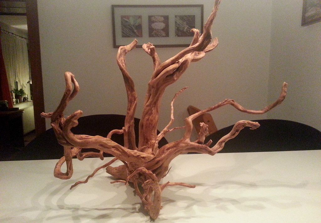 Gerade habe ich die Wurzel in ca. 15 Teile zerlegt und zusammen mit den vorhandenen Steinen ein wenig