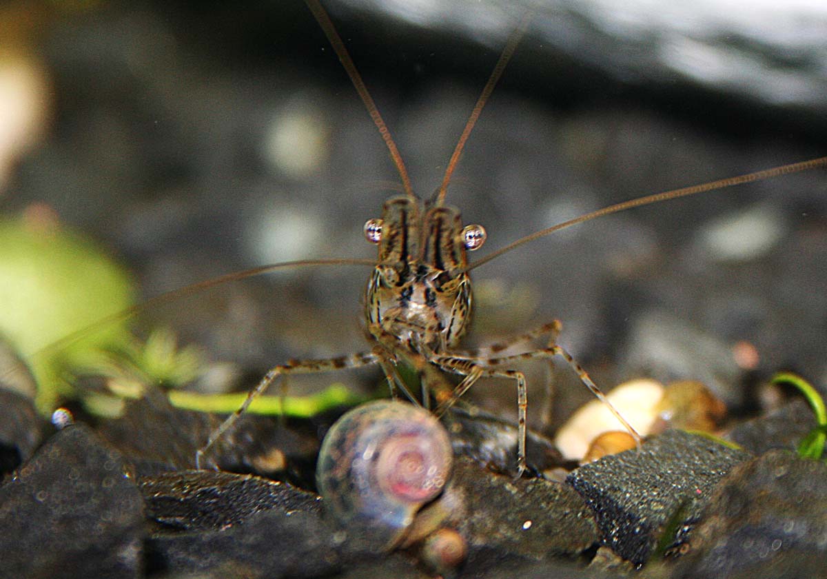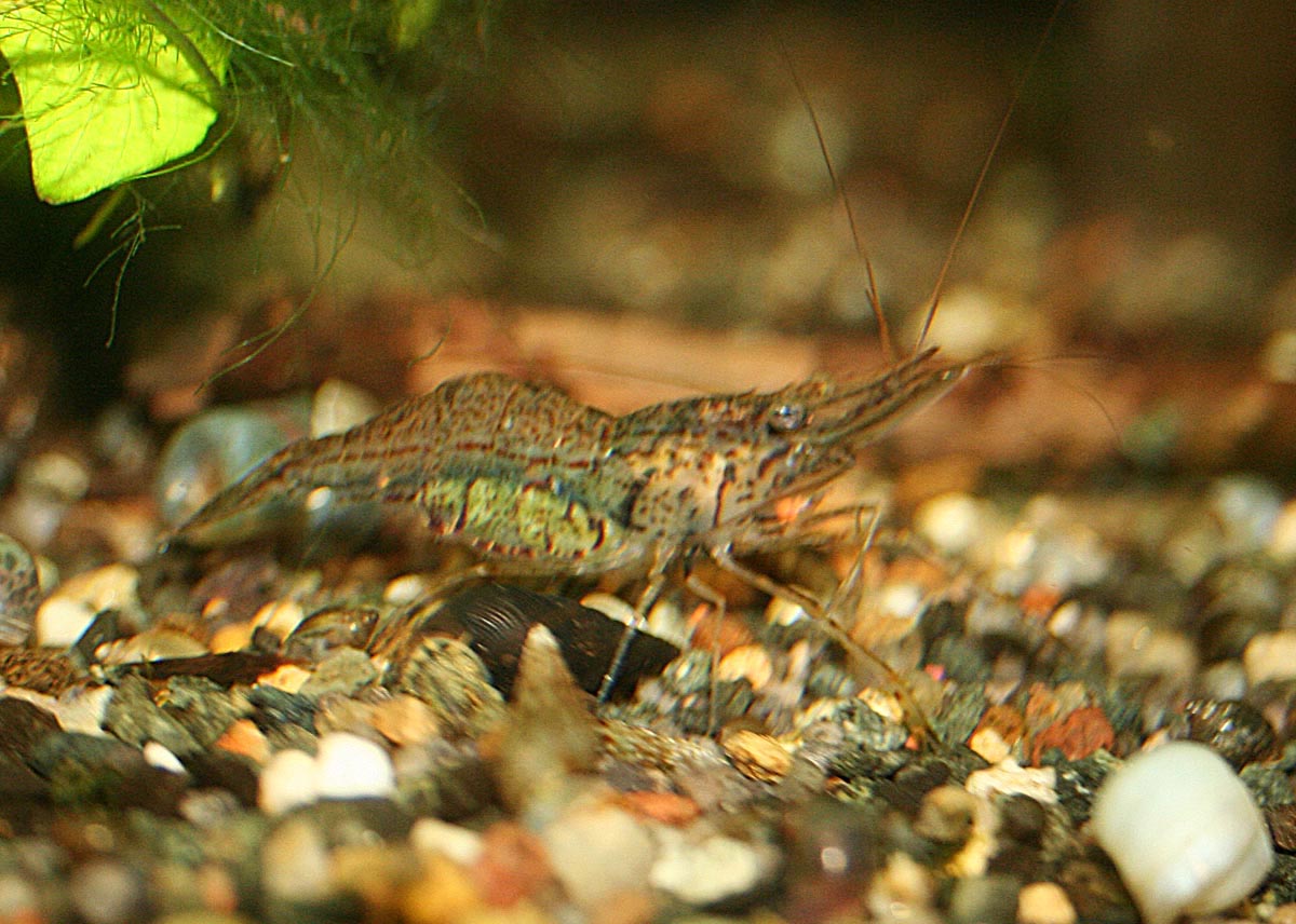 Ich hatte mir vor ein paar Monaten ein Grüppchen Macrobrachium spec. Inlesee zugelegt und nach kurzer Zeit war dann der wohl unvermeidliche Nachwuchs da. Da ich den großen Tieren nicht so recht vertraut hatte, fing ich die Kleinen dann doch alle heraus und brachte sie bei meinem Precox-Nachwuchs unter.