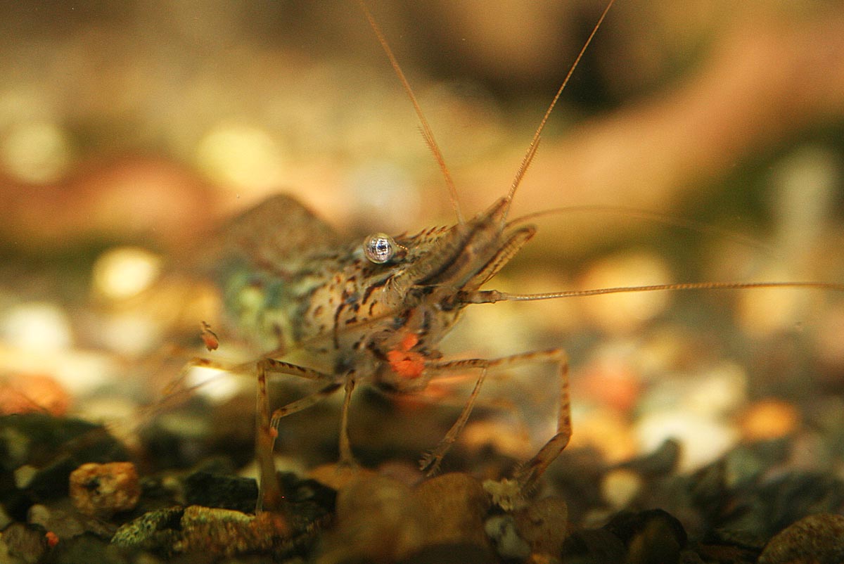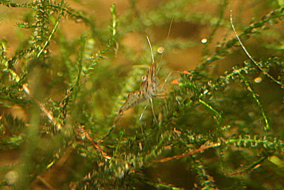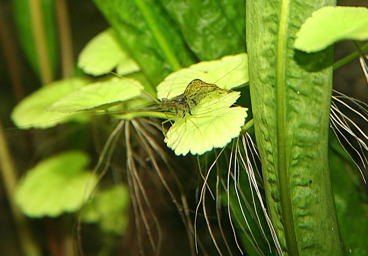 Ich hatte mir vor ein paar Monaten ein Grüppchen Macrobrachium spec. Inlesee zugelegt und nach kurzer Zeit war dann der wohl unvermeidliche Nachwuchs da. Da ich den großen Tieren nicht so recht vertraut hatte, fing ich die Kleinen dann doch alle heraus und brachte sie bei meinem Precox-Nachwuchs unter.