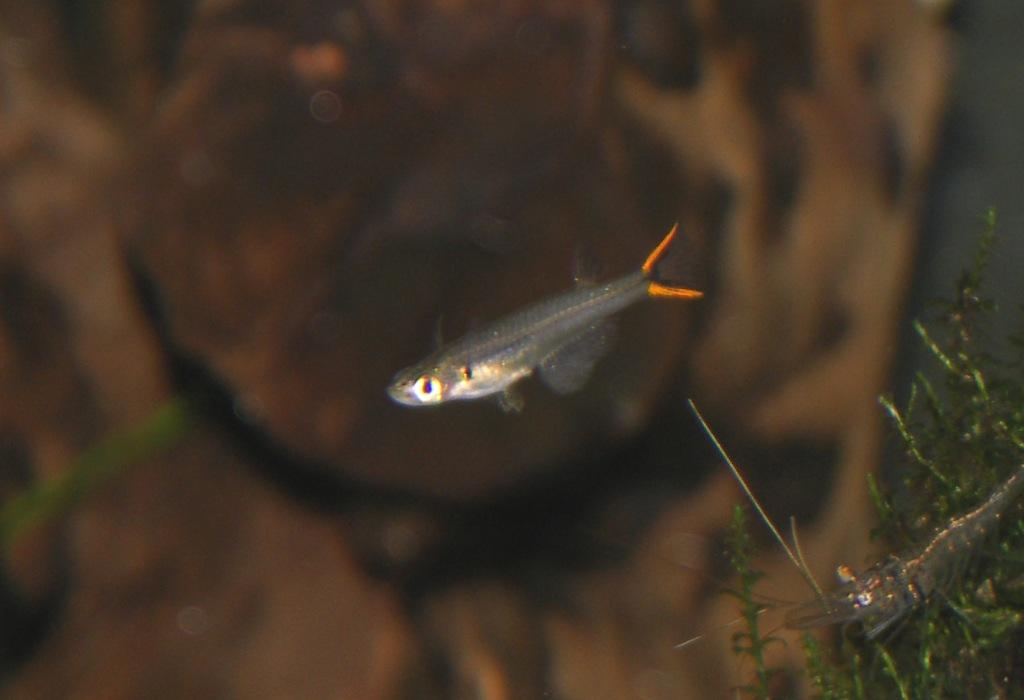 Auf Fischbesatz haben meine Garnelen eine ganze Zeit lang verzichtet. Aber so´n paar Jahre ohne Fischchen reichen dann auch. Jetzt sind in zwei Garnelenbecken Längsband-Zwergberblinge und Mekong Reiskärpflinge am herumpaddeln. Und wehe, die machen das Maul zu weit auf, dann gibt´s Einzelhaft :D . Bisher interessieren sie sich aber brav nur für Würmchen und Artemia :).