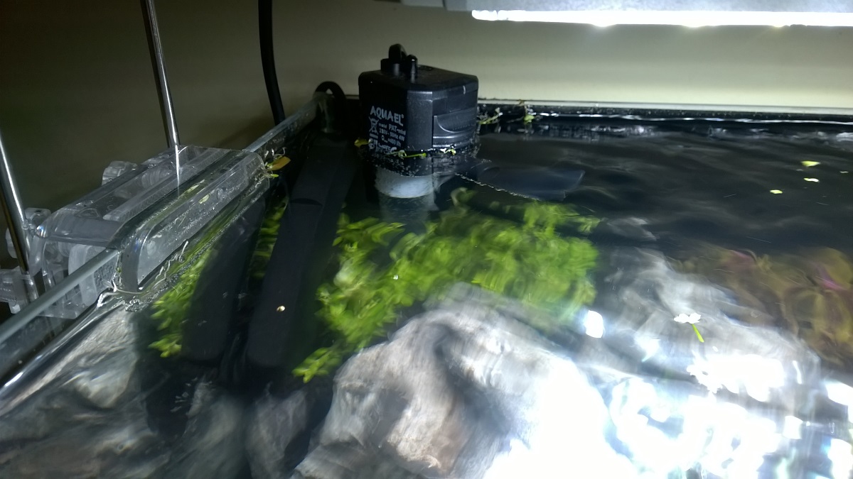 Da der Aquael Circulator 500 Strömungspumpe zu stark wäre, habe ich mich für den Pat Mini Filter entschieden.