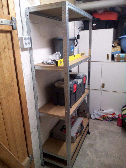 Durch Zufall räumte ich am gleichen Tag den Keller auf und dacht Hey hier würde so ein Regal ja gut hinpassen.