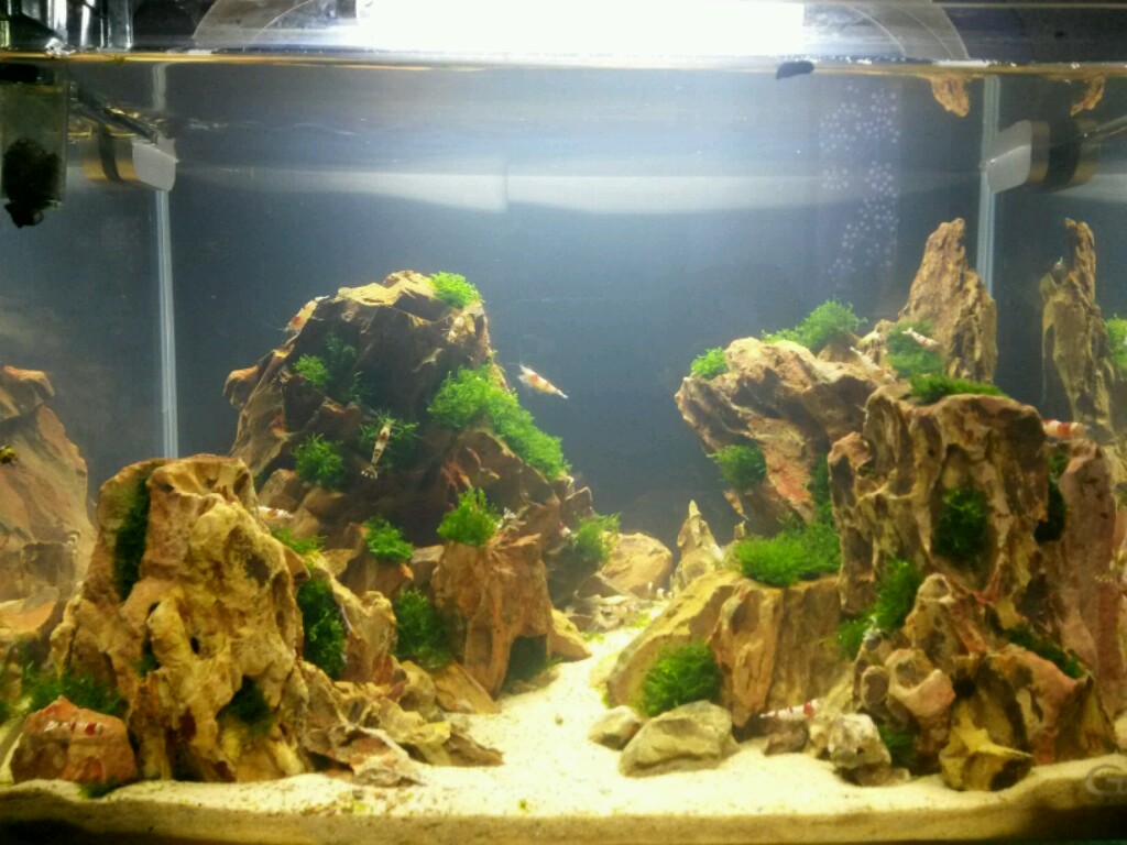 nach längerer Abwesenheit zeige ich Euch mal ein Update von meinem Becken. Es läuft noch immer absolut Problemlos und ohne jegliche Algen. Das Korallenmoos ist fleißig gewachsen und den Garnelen geht es bestens. Mein selbstgebauter Ausenfilter hat sich im Langzeittest auch bewährt und läuft noch immer einwandfrei und absolut Geräuschlos. Auch an der Lampe habe ich etwas gebastelt. Die alten Halterungen fand ich nicht sonderlich schön, so dass ich mir was aus Plexiglas gebastelt habe.
