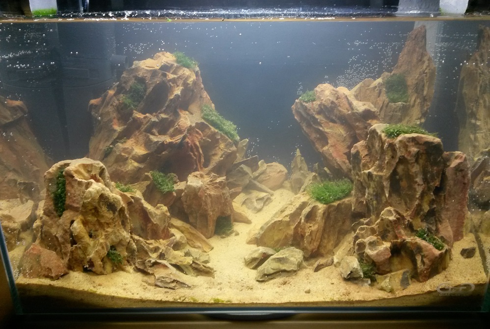 Die Verkäuferin war super nett und hat das Becken, so wie es war, top eingepackt. Ich hatte erst Bedenken, ob das Layout den weiten Heimweg gut übersteht. Aber ich muss sagen, die Leute da verstehen Ihr Handwerk. :) Auch die Empfehlung der Verkäuferin für das Scape nur Moose zu verwenden war goldrichtig.